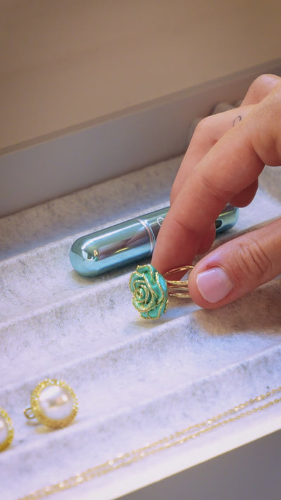 This enchanting ring holds the essence of a rose within, releasing its delicate scent whenever your heart desires.