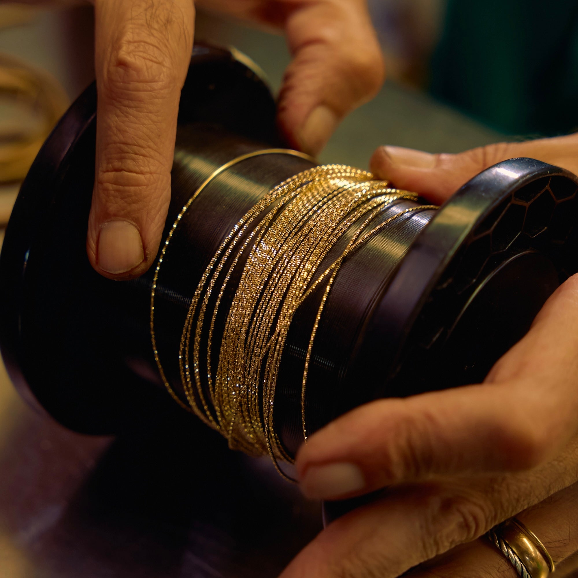 The innovative use of diamond-cut wire, and the perfect balance between craftsmanship and technology, have enabled CAORO not only to become a point of reference for other companies in the industry, but also to offer its clients jewels with a strong creative essence, where gold is not simply a precious metal, but a true form of artistic expression.